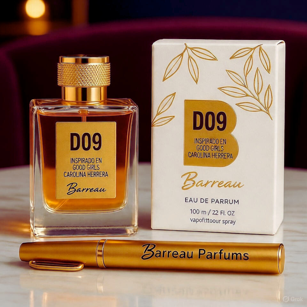 Incluye la fragancia D09, inspirada en Good Girl de Carolina Herrera, un aroma femenino, intenso y envolvente que resalta la sofisticación natural de quien lo lleva. Ideal para noches elegantes, cenas especiales y celebraciones donde la presencia lo es todo.